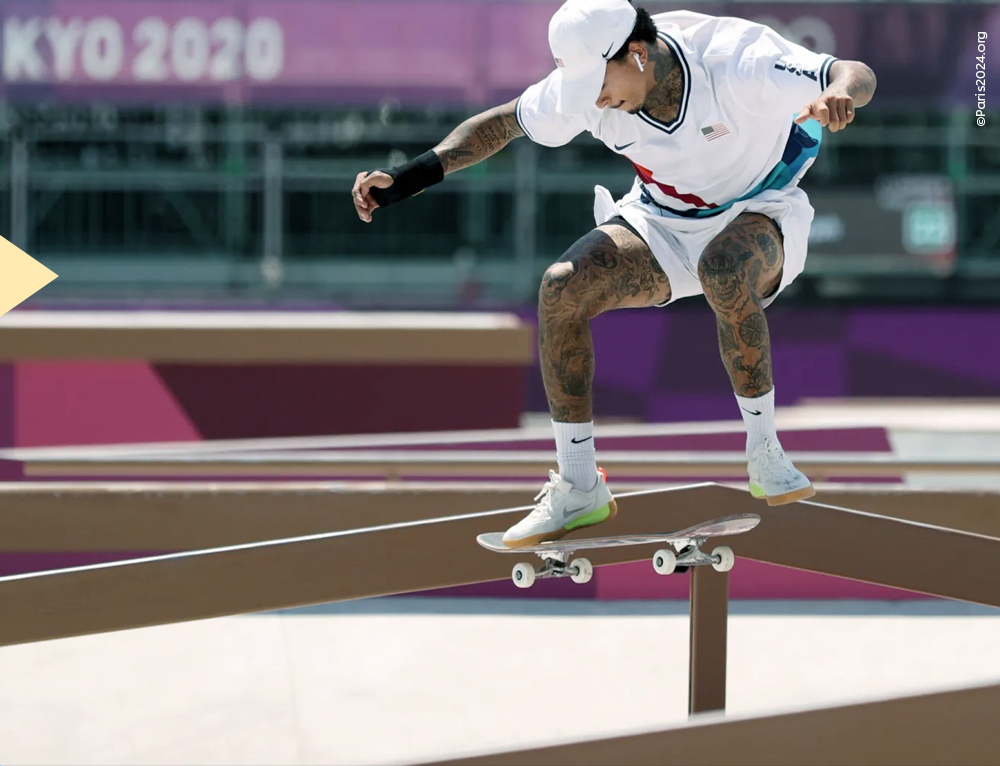 Skateboarding Skateboarding, rooted in 1950s US surf culture and evolving through the rebellious 1980s underground scene, embodies values of freedom and thrill-seeking. By the 21st century, it gained widespread popularity, especially among younger audiences. After debuting at the Tokyo 2020 Olympic Games in 2021, skateboarding will return for Paris 2024. 📍Place de La Concorde. |