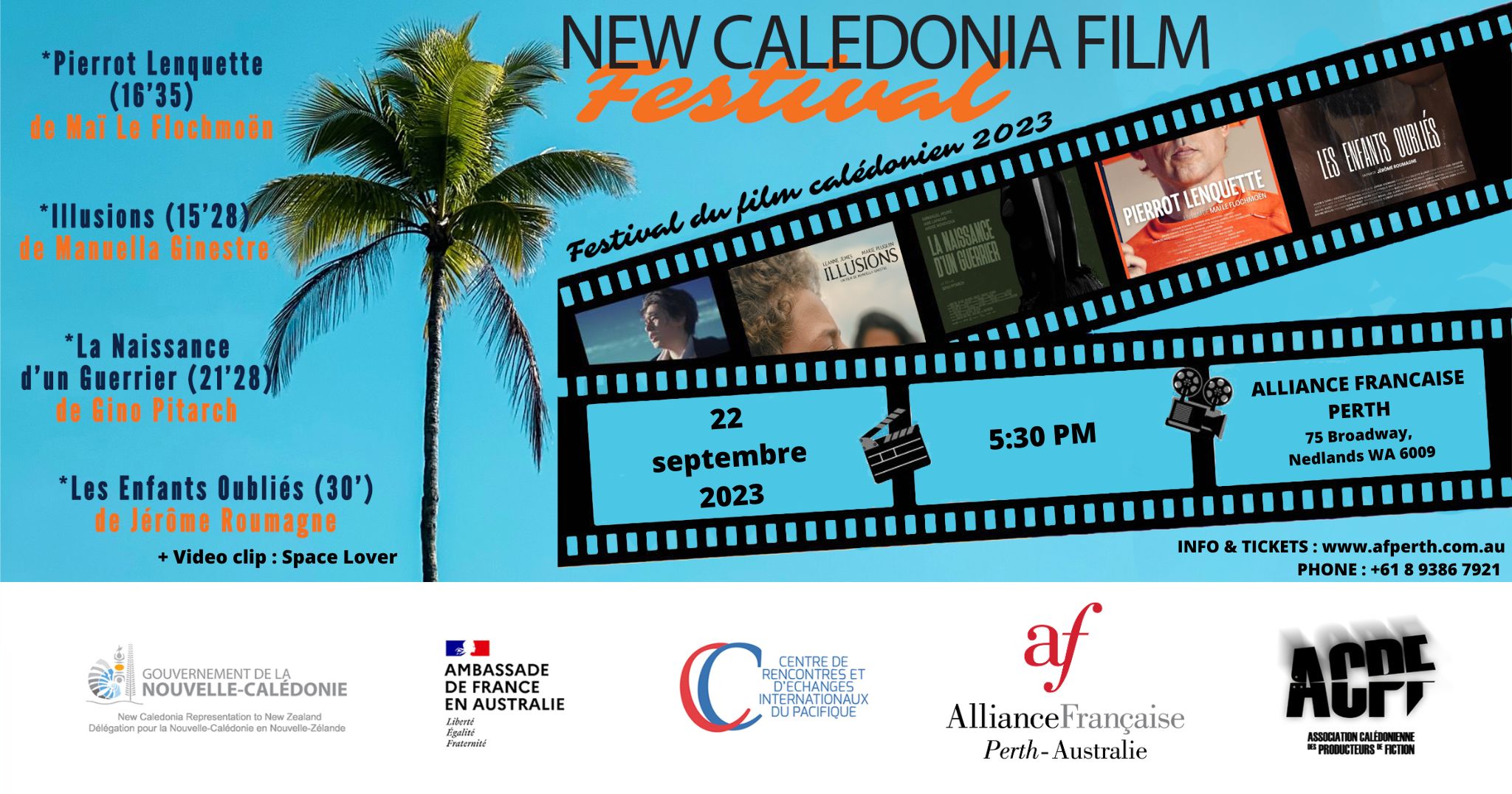 Dans le cadre des célébrations de la « Fête de la citoyenneté » en Nouvelle-Calédonie (24 septembre), la Délégation de la Nouvelle-Calédonie en Australie organise l’édition 2023 du « New Caledonia Film Festival », en partenariat avec le réseau des Alliances Françaises d’Australie, le Centre de rencontres et d’échanges internationaux du Pacifique (CREIPAC) et l’ambassade de France à Canberra.