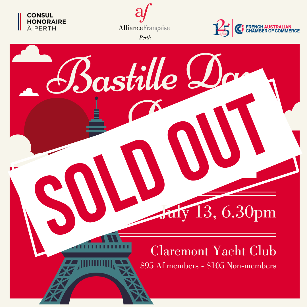 In collaboration with the French-Australian Chamber of Commerce and Industry and the French Consulate, Alliance Française de Perth is organising the annual Bastille Day celebration with a dinner immersed in the most beautiful French atmosphere in Perth.